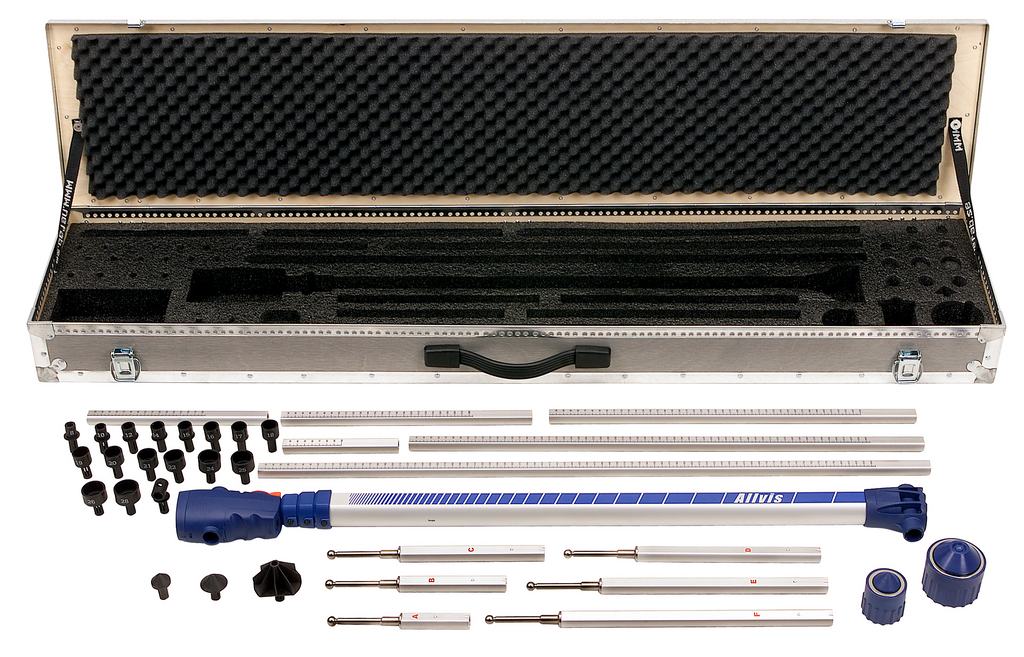 Allvis Digital Measuring Systems are complete with measuring adapters, height rods and accessories, delivered in a heavy duty storage case.