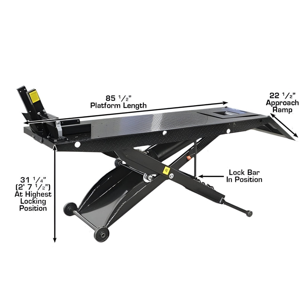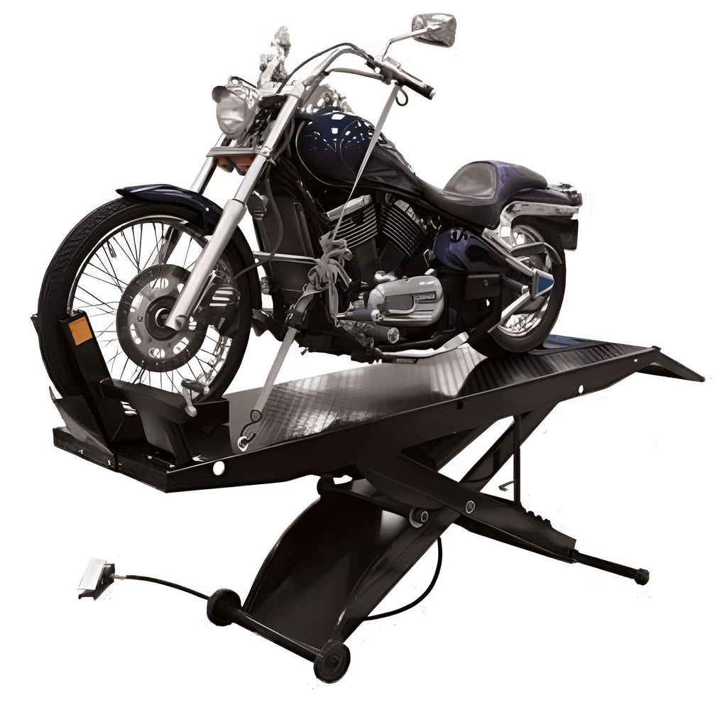 Meet the Atlas ACL: your bike’s new best friend. This isn't just a lift; it's a game-changer. Now picture your bike effortlessly elevated to the perfect working height. No more backaches, no more skinned knuckles. More importantly, no more falling. The Atlas ACL is built for both pros and passionate home mechanics. With a useful 1,000 lb capacity, it's tough enough for your Harley, yet gentle enough for your vintage Honda. The adjustable front wheel vise and air-operated foot pedal make lifting and lowering a breeze.