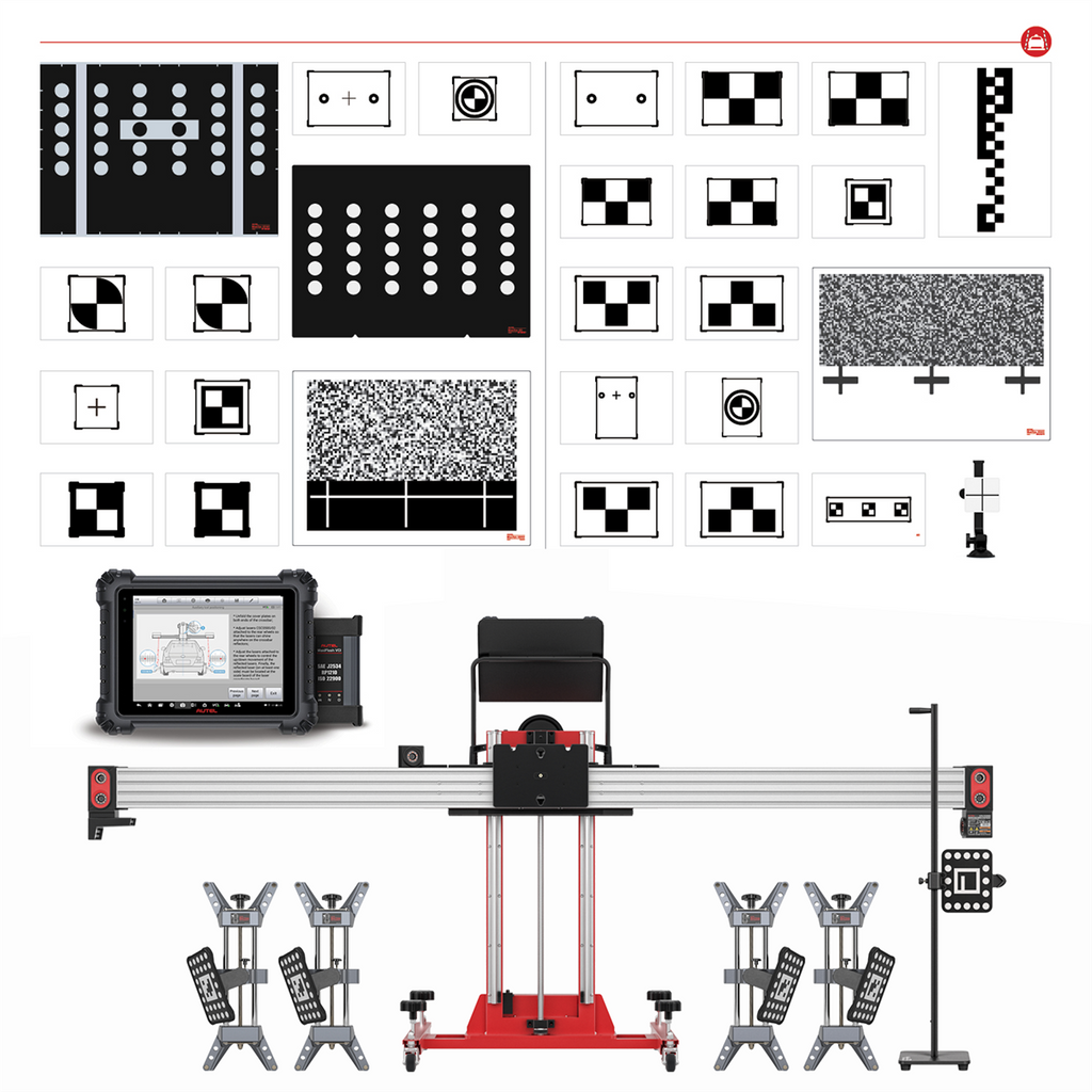 The ADAS LDW 3.0T is a Lane Departure Warning calibration system that includes the Autel Standard Calibration Frame, targets and patterns for Honda, Genesis, VW, Mercedes, Hyundai, Kia, Nissan, Infiniti, Mazda, Mitsubishi, Subaru, Toyota, and Lexus vehicles with LDW camera systems. Includes the MaxiSYS MS909 diagnostic tablet with ADAS calibration software upgrade. This system includes the IA800 optical positioning package that enables rapid vehicle to target positioning and precheck of vehicle alignment. The IA800 package includes six cameras, wheel clamps and positioning targets and distance positioning stand. Includes 2- and 5-line lasers, plumb bob, laser-assisted mirror, L-shaped bracket and laser reflector. one-year warranty.