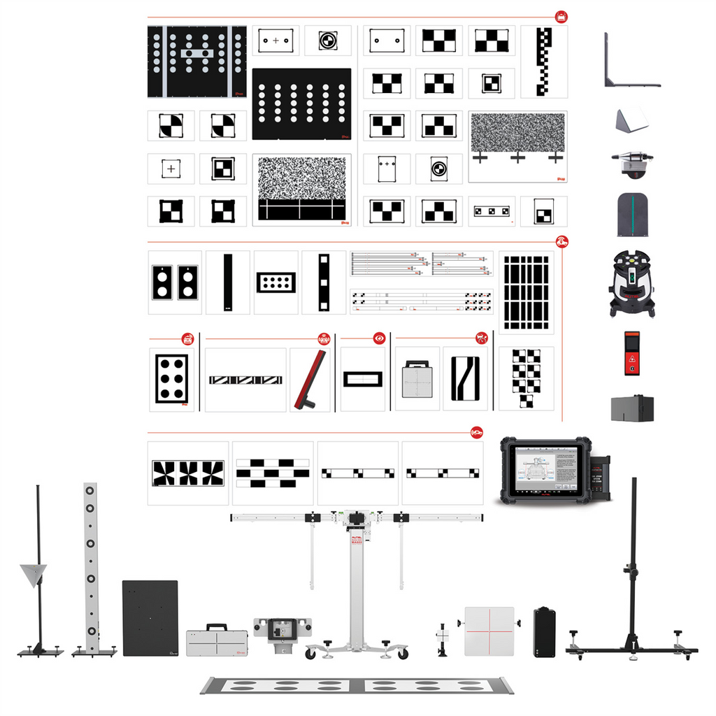 MA600 All Systems Calibration Package with MaxiSYS 909 Tablet and ADAS Software Upgrade. Package includes MA600 Frame, targets, patterns and components for LDW, ACC, Lidar, Radar, Night Vision, RCW, Lane Watch and AVM system calibrations; LDW Patterns/Targets for Alpha Romeo, Honda, VW, Mercedes, Hyundai/Kia, Nissan, Infiniti, Mazda, Mitsubishi, Mazda, Subaru, Toyota/Lexus; Lidar Calibration for VW/Audi, Lexus, Toyota; RCW patterns/package for VW, Nissan, Mercedes; Honda Lanewatch Target; Target Stand; One Year Limited Warranty