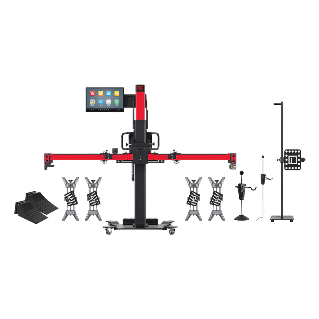 - Includes four-wheel clamps with camera targets, steering wheel lock and wheel chocks