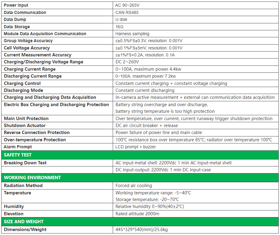 - Charging / Discharging Voltage Range: ≤±0.1%FS+0.2A