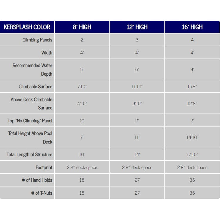 KerSplash Pool Climbing Wall Specifications & Measurements