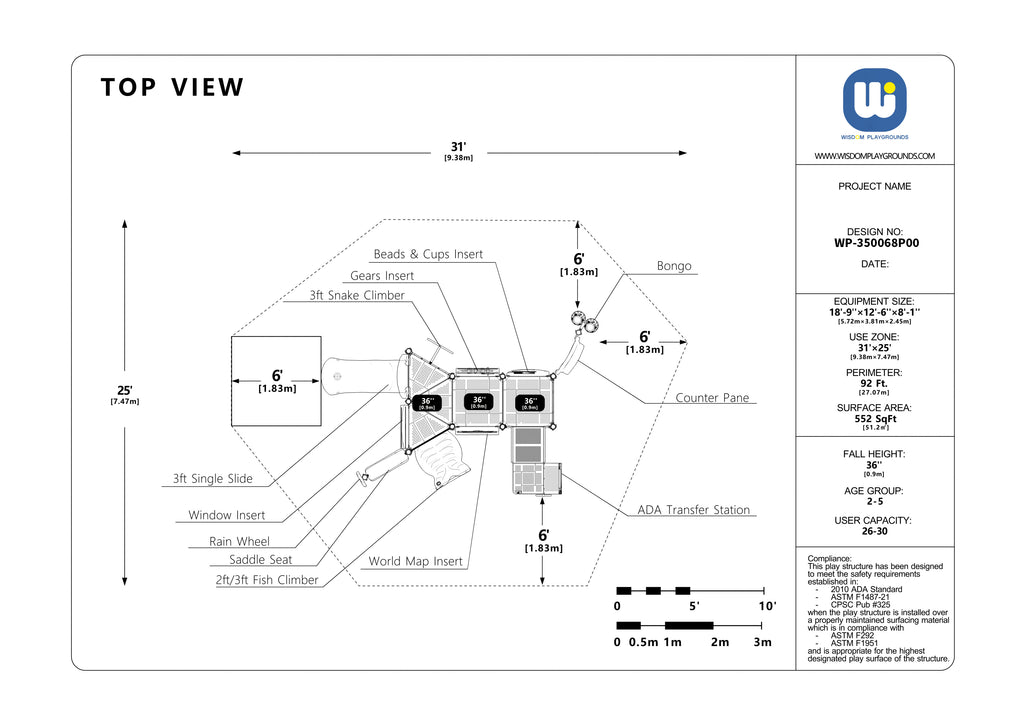 - Accessible and Inclusive Play: The inclusion of an ADA 4-foot transfer station ensures that children of all abilities can easily access and enjoy all the exciting features of the playground.