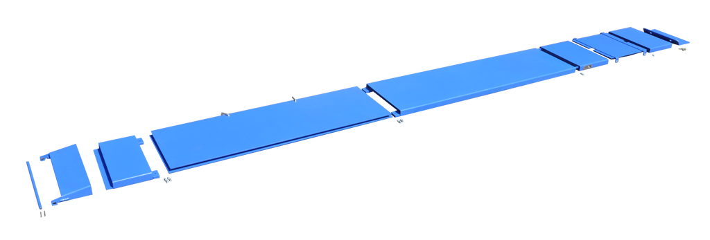 - Provides a level surface from turntable cutouts to rear slip plates