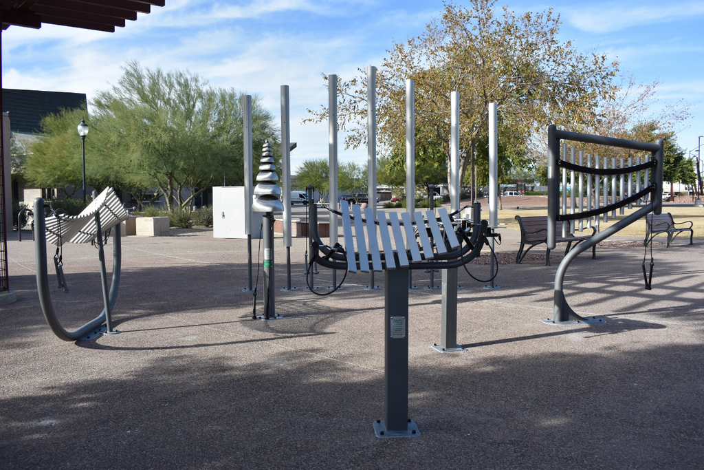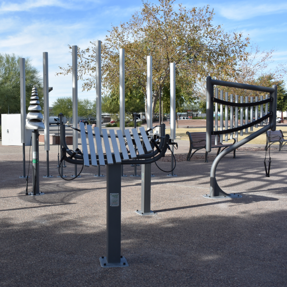 Benefits: Transform your outdoor setting into an extraordinary fusion of art and sound, sparking wonder, sophisticated engagement, and a deep appreciation for beauty. The Sculptural Ensemble's visually stunning instruments, with their stylish steel posts and graceful forms, create a powerful aesthetic statement even before a note is played. Once struck, the diverse array of chimes, bells, metallophones, and cymbals produces a rich, resonant symphony, inviting users to become part of the living art. Imagine the ethereal tones echoing through your space, or the mesmerizing visual dance of light on steel as visitors engage, making lives better through an immersive, multi-sensory experience.