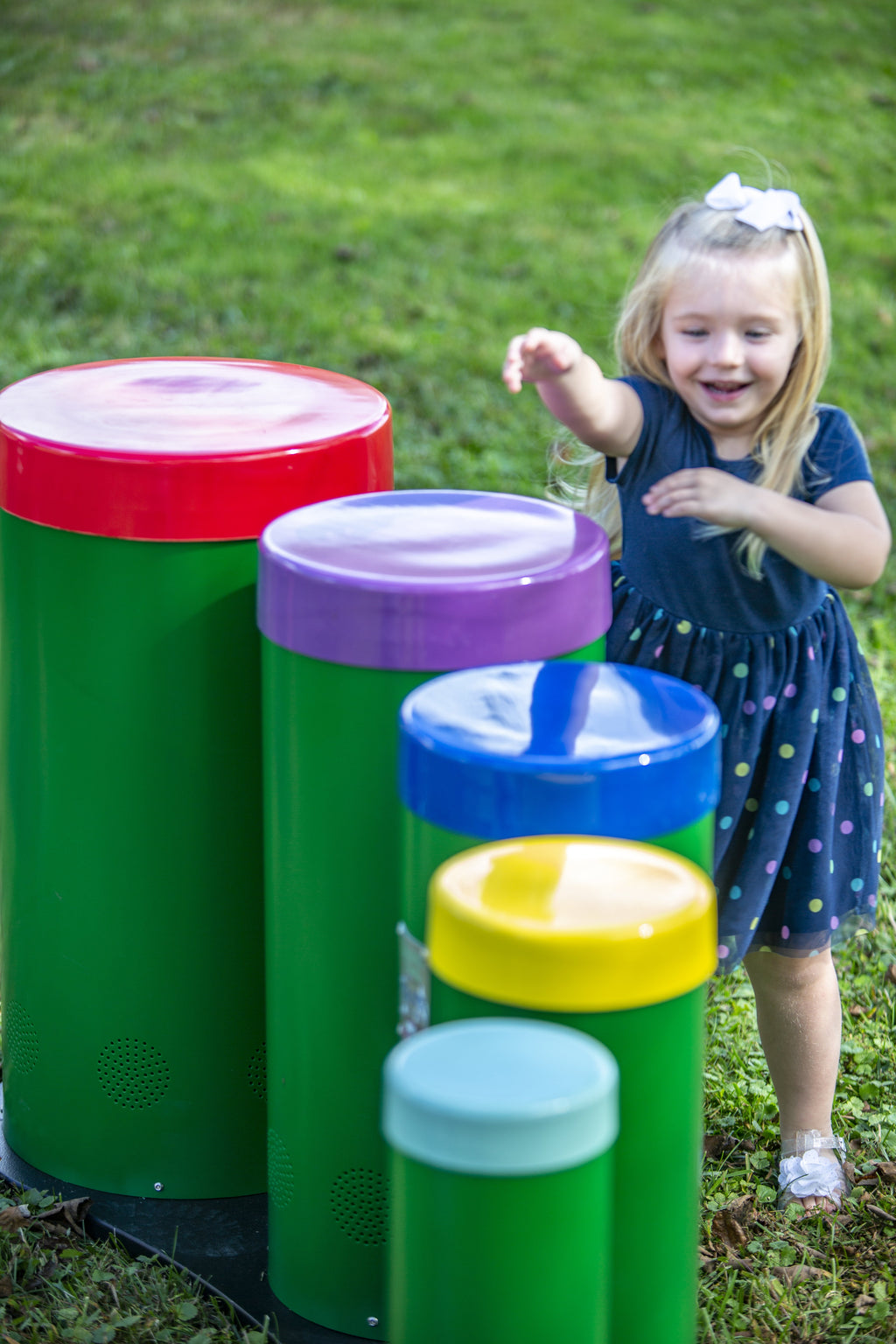 Ignite infectious rhythms and joyous movement in your outdoor space with the FreeNotes Tuned Drums 5 Musical Element, SKU TD. Featuring a distinctive Afro-Cuban influence, these drums are perfect for: