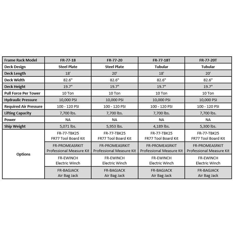 - Frame Rack Model: FR-77-20