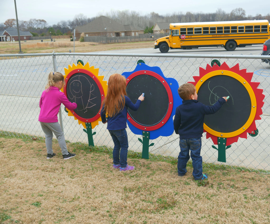 - Designed for Play Longevity: Crafted from robust materials, with colorful flowers made of HDPE Plastic and the black center made of TPO plastic, these chalkboards are engineered to withstand the rigors of enthusiastic play and the elements, maintaining their vibrant appearance and functionality for years.