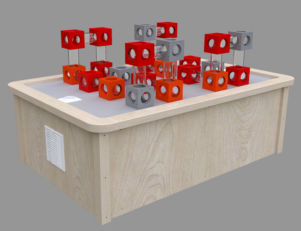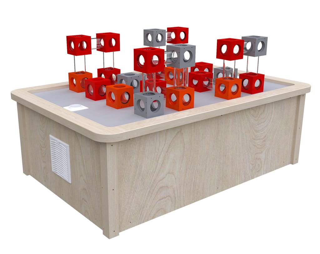 Are you a pioneering leader in non-profit organisations, nurseries, preschools, schools, religious establishments, community centres, daycares, parks, apartment complexes, or homeowners associations, seeking an innovative and captivating exhibit to elevate interactive learning and collaborative play? Imagine a dynamic tabletop experience where users become engineers, creatively stacking colorful cubes and connecting clear tubes to construct their own air-powered pathways, watching ping-pong balls soar through their custom-built courses on gentle streams of air generated from beneath the surface.