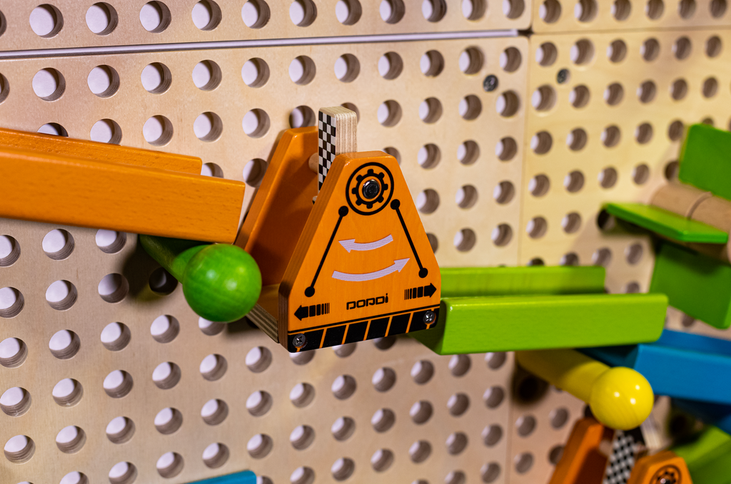 - Turbo Track Raceway: Design custom raceways for wooden balls to explore physics (Cognitive Age: 🟢 5+, Safety Age: 🔵 5+).