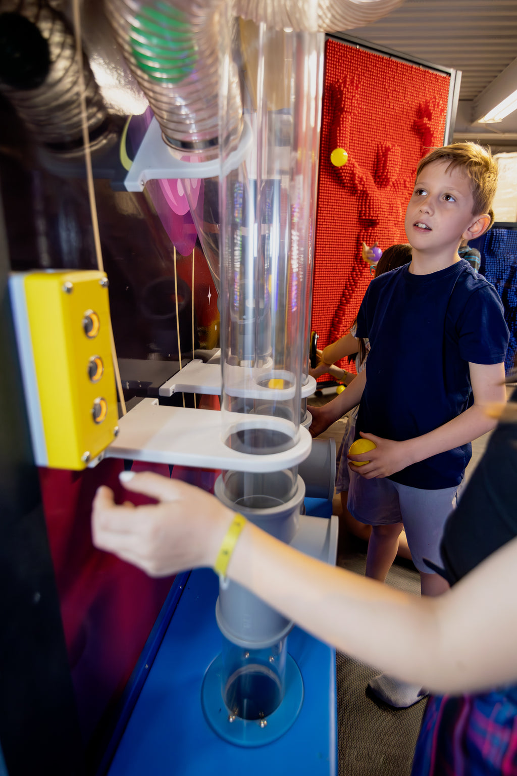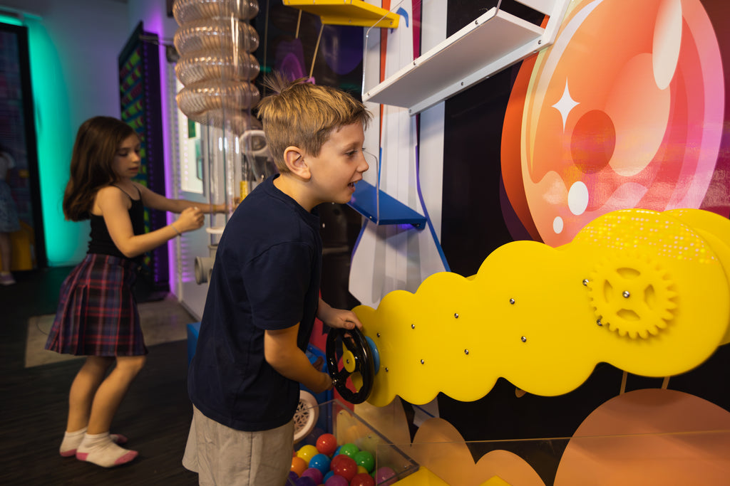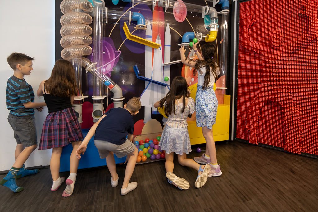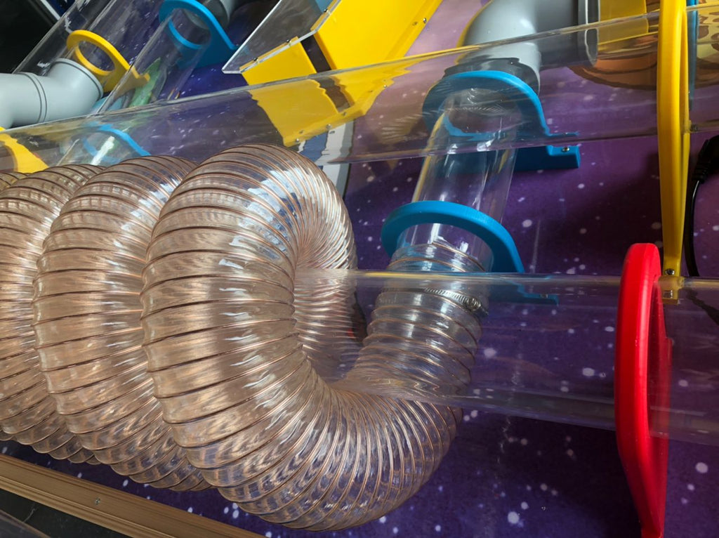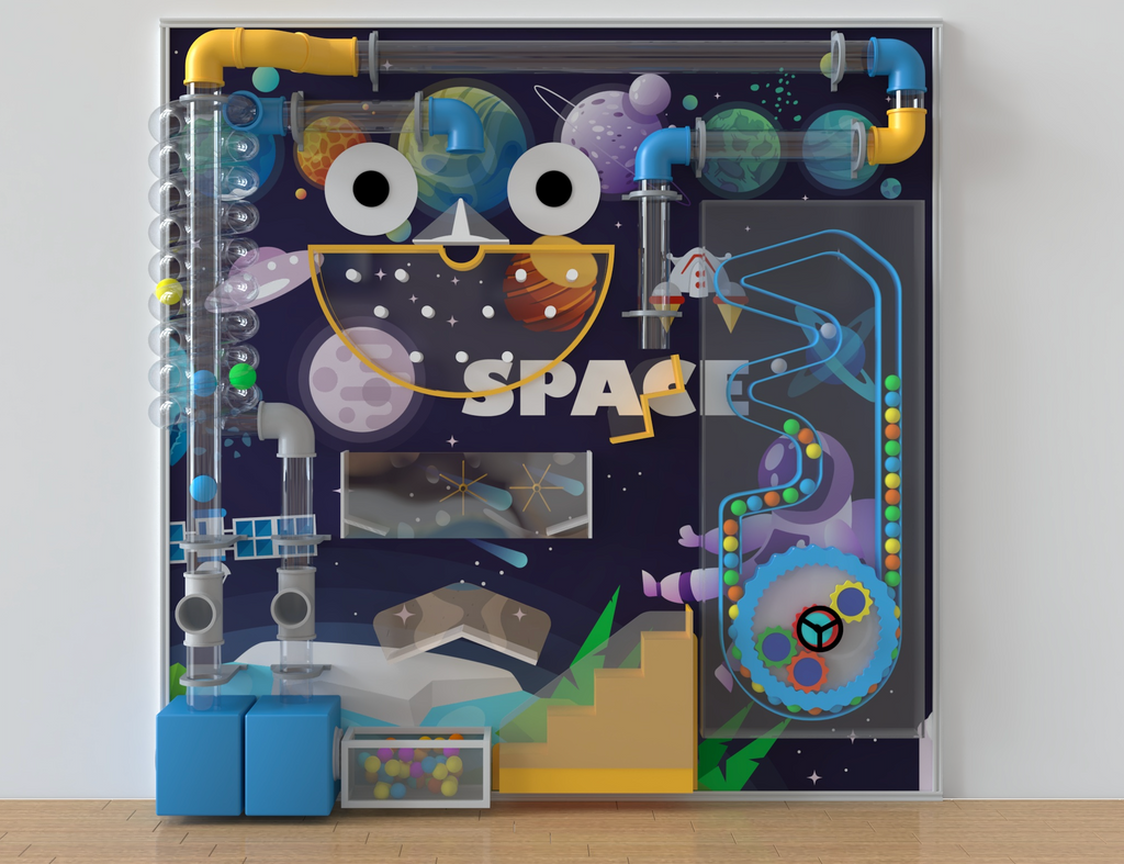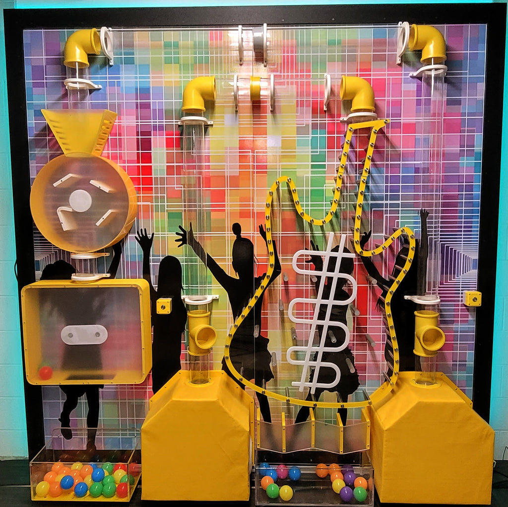 Are you a visionary leader in non-profit organisations, nurseries, preschools, schools, religious establishments, community centres, daycares, parks, apartment complexes, or homeowners associations, seeking a dynamic and captivating exhibit to elevate your interactive play areas and engage users of all abilities? Imagine a mesmerizing, air-powered system that launches lightweight balls through a thrilling network of clear tubing, spinning gears, captivating plinko games, and moving conveyor belts, creating an exhilarating chain reaction of motion and visual delight.