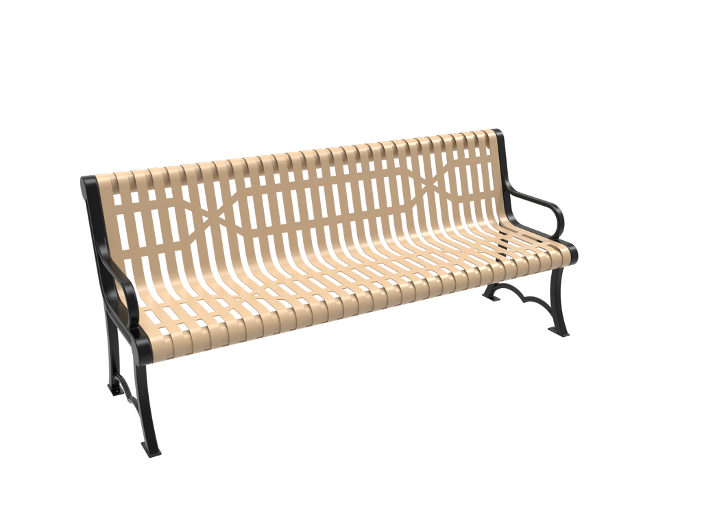 Increase comfort, style, and community spirit with the MyTCoat 4' - 6' Austin Bench with Arm - Slatted Steel - Cast Iron Frame - Portable/Surface Mount (SKU BAU04)!