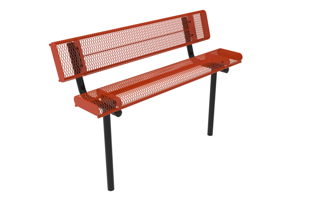 Elevate comfort, stability, and community spirit with the MyTCoat 4' - 6' Bench with Back - Rolled Edges - Expanded Metal - Inground Mount (SKU BRE04)!