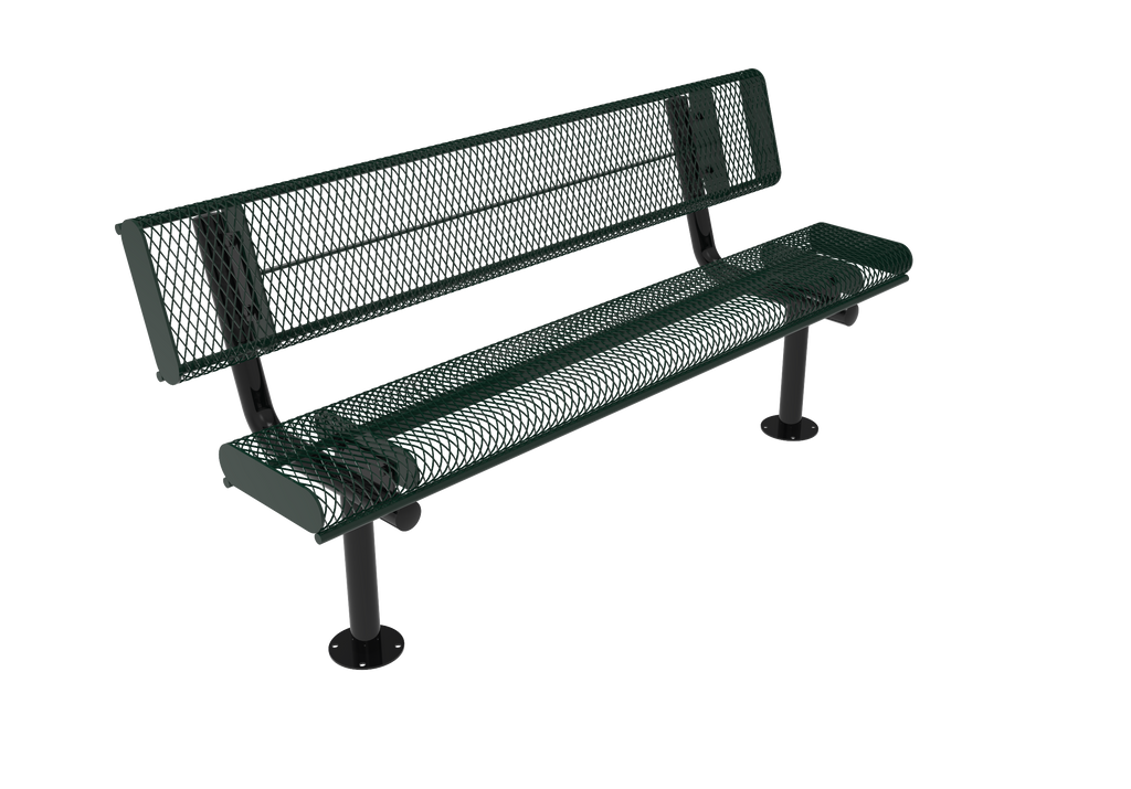 Elevate comfort, stability, and community spirit with the MyTCoat 4' - 6' Bench with Back - Rolled Edges - Expanded Metal - Surface Mount (SKU BRE04)!
