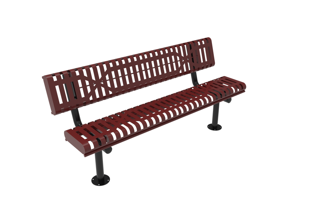 Elevate comfort, stability, and community spirit with the MyTCoat 4' - 6' Bench with Back - Rolled Edges - Slatted Steel - Surface Mount (SKU BRE04)!