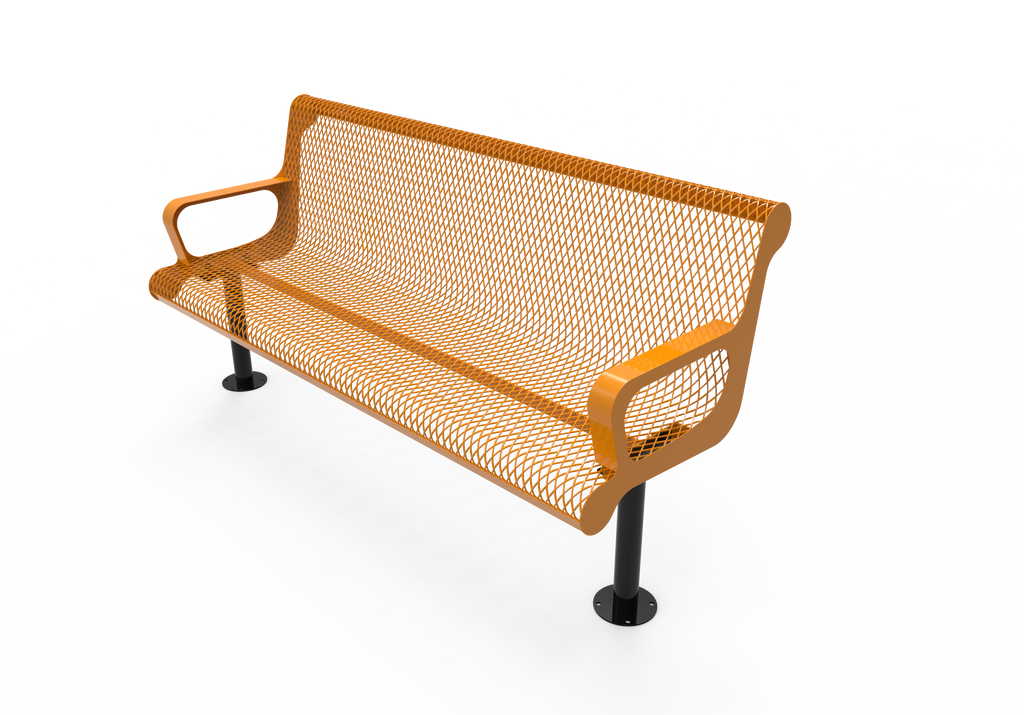 Elevate comfort, stability, and community spirit with the MyTCoat 4' - 6' Contoured Bench with Arm - Expanded Metal - Surface Mount (SKU BCA04)!