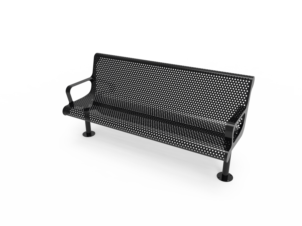 Elevate comfort, stability, and community spirit with the MyTCoat 4' - 6' Contoured Bench with Arm - Punched Steel - Surface Mount (SKU BCA04)!