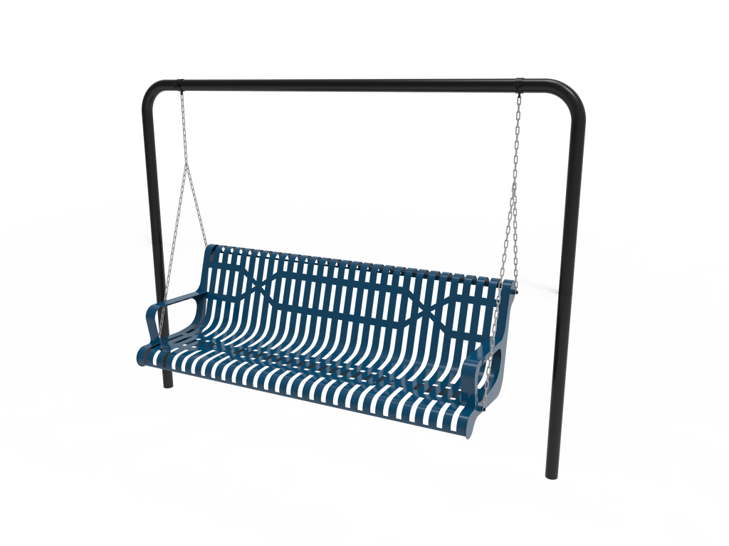 Elevate comfort, relaxation, and community spirit with the MyTCoat 4' - 6' Contoured Swing Bench with Arm - Slatted Steel - Inground Mount (SKU BCA04)!