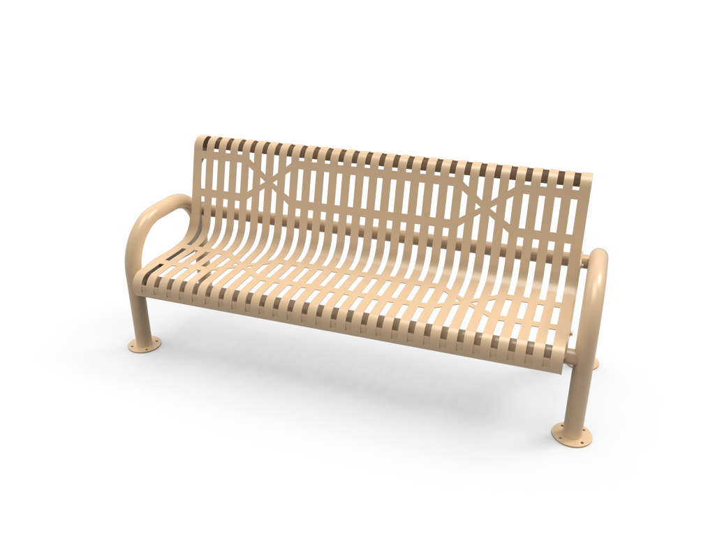 Elevate comfort, style, and community spirit with the MyTCoat 4’ - 6' MOD Bench with Back - Slatted Steel - Surface Mount (SKU BMD04)!