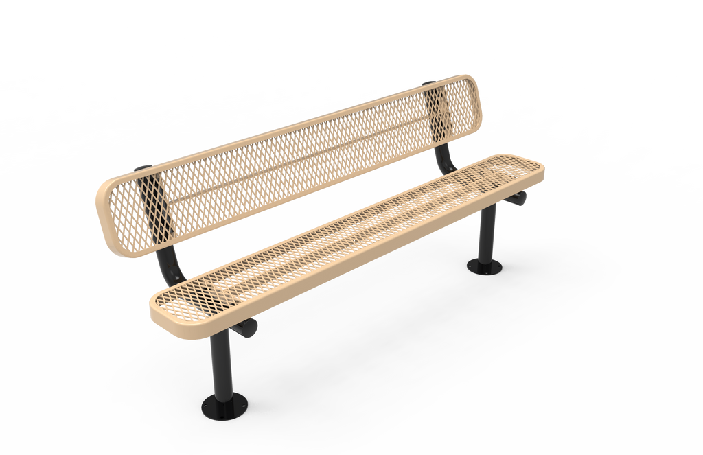 Elevate comfort, stability, and community spirit with the MyTCoat 4' - 8' Standard Bench with Back - Expanded Metal - Surface Mount (SKU BRT04)!