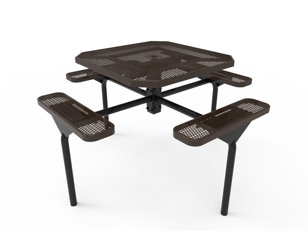 Improve your outdoor spaces and foster vibrant community connections with the MyTCoat 46” Octagon Nexus Pedestal Table - Expanded Metal - Inground Mount (SKU TOT46)!
