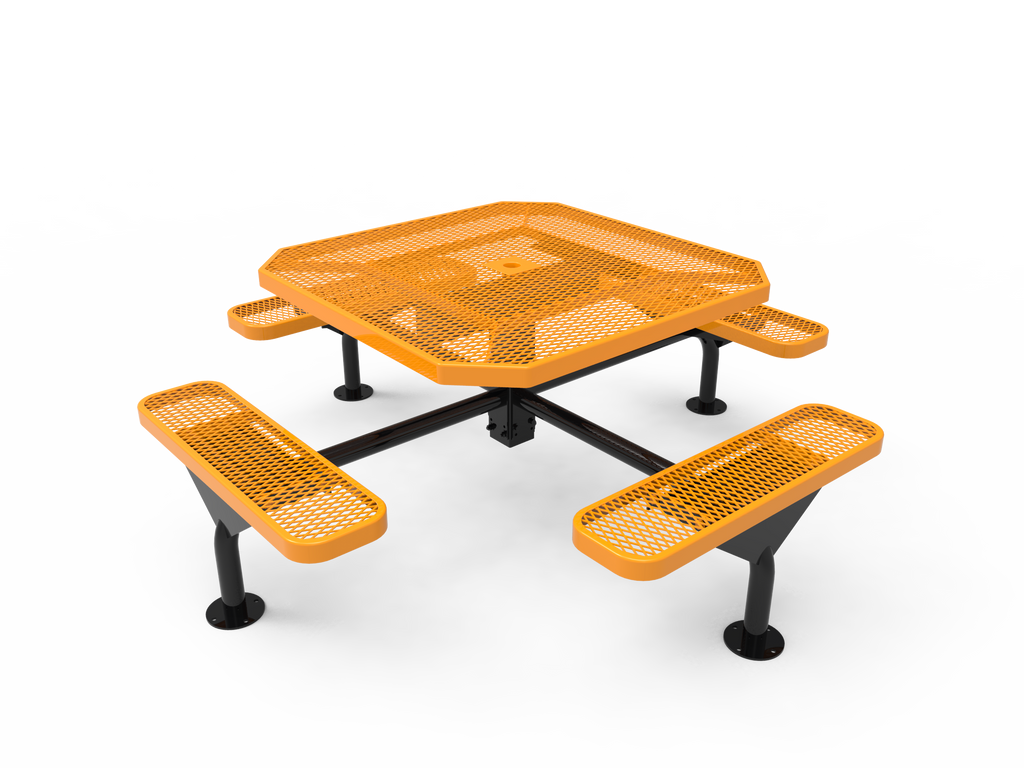 Improve your outdoor spaces and foster vibrant community connections with the MyTCoat 46” Octagon Nexus Pedestal Table - Expanded Metal - Surface Mount (SKU TOT46)!
