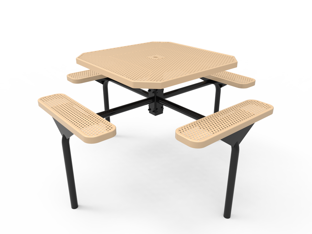 Elevate your outdoor spaces and foster vibrant community connections with the MyTCoat 46” Octagon Nexus Pedestal Table - Punched Steel - Inground Mount (SKU TOT46)!