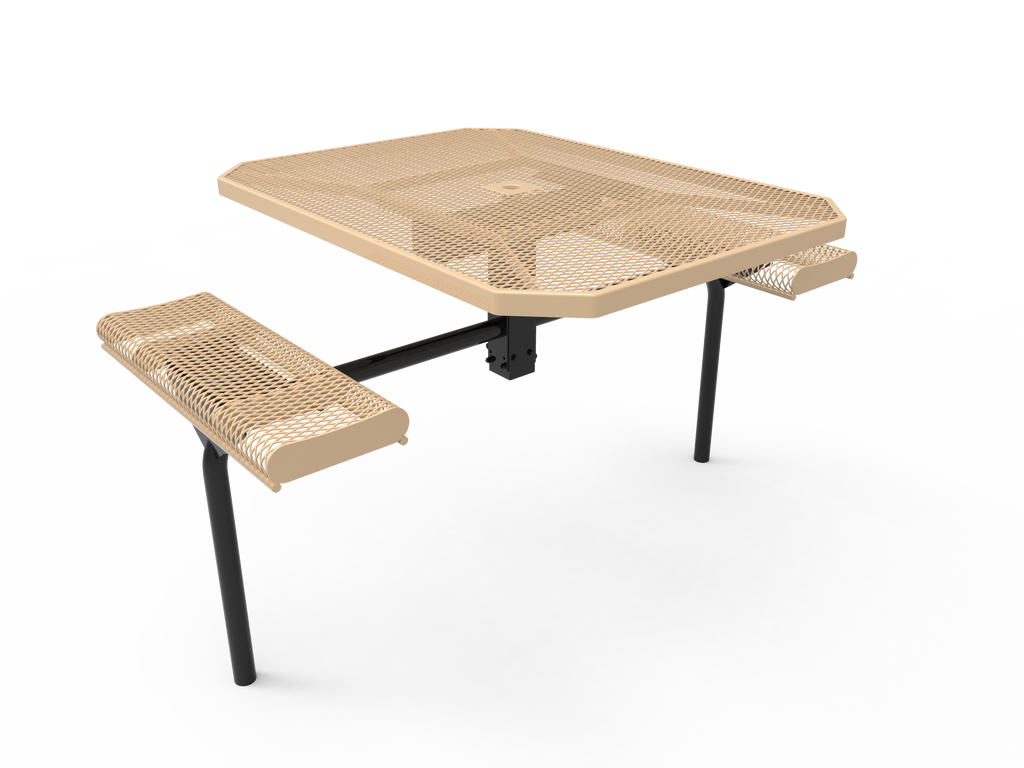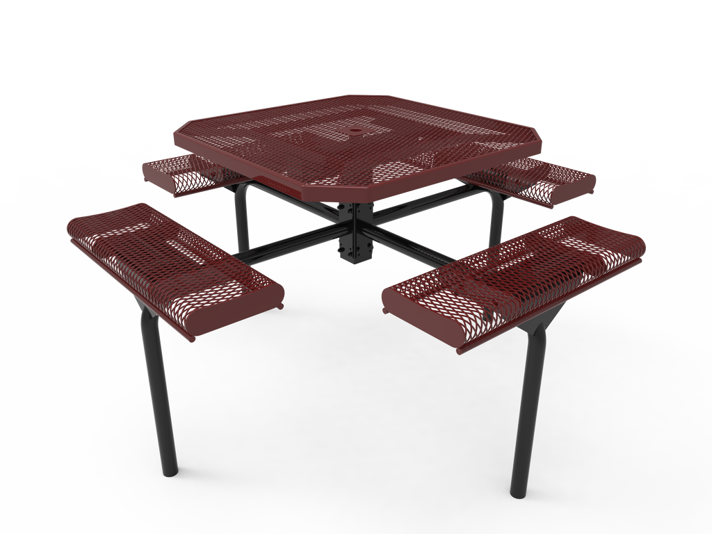 Elevate your outdoor spaces and foster vibrant community connections with the MyTCoat 46” Octagon Nexus Pedestal Table with Rolled Seats - Expanded Metal - Inground Mount (SKU TOR46)!