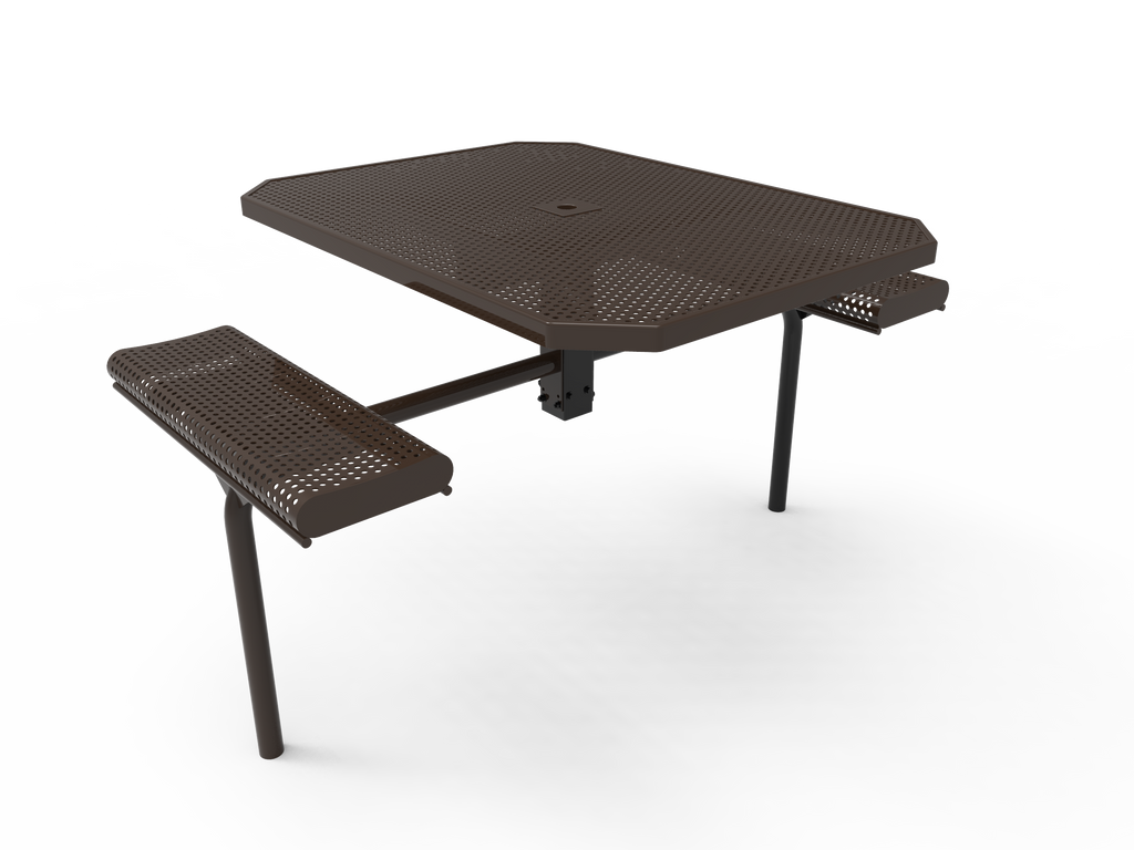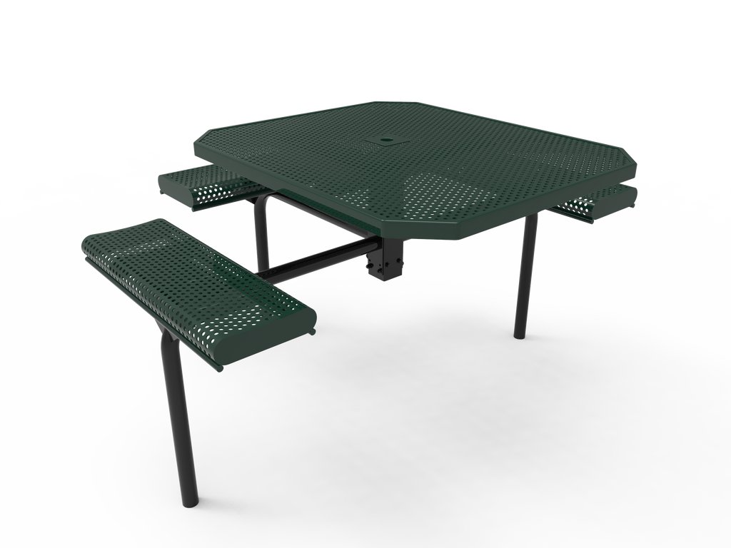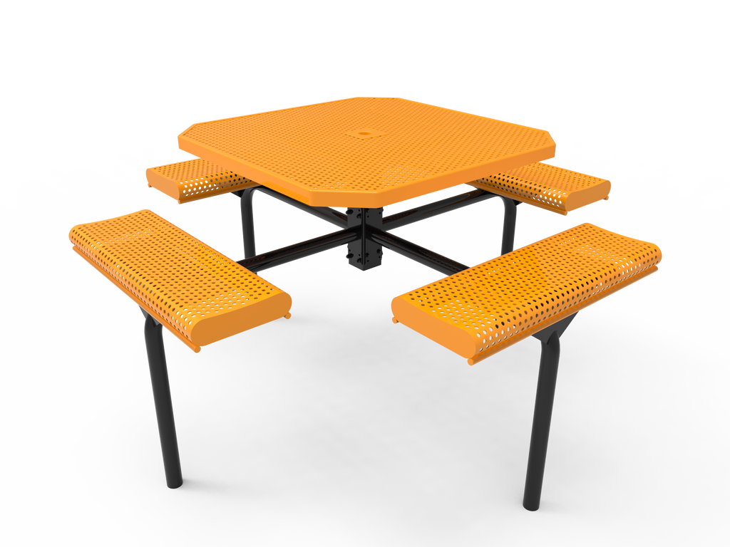 Elevate your outdoor spaces and foster vibrant community connections with the MyTCoat 46” Octagon Nexus Pedestal Table with Rolled Seats - Punched Steel - Inground Mount (SKU TOR46)!