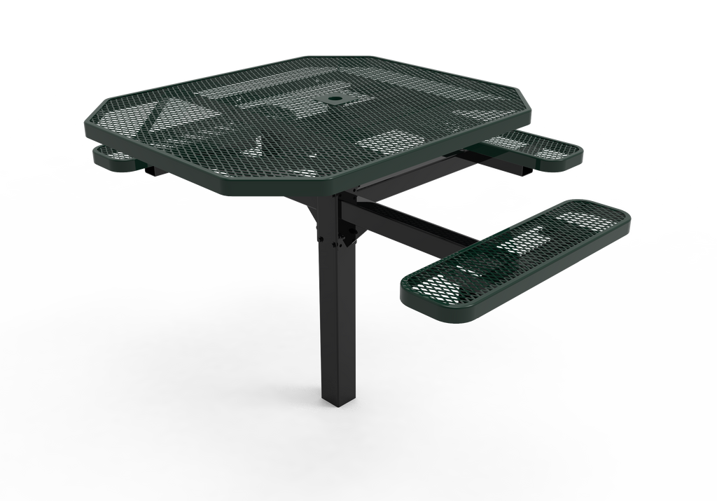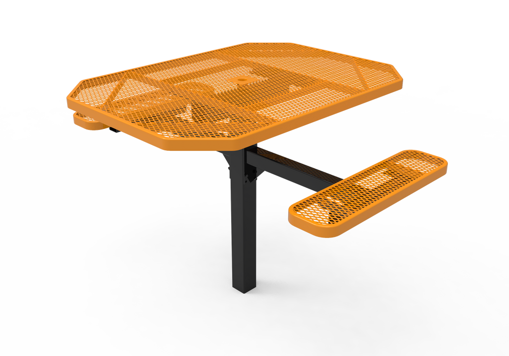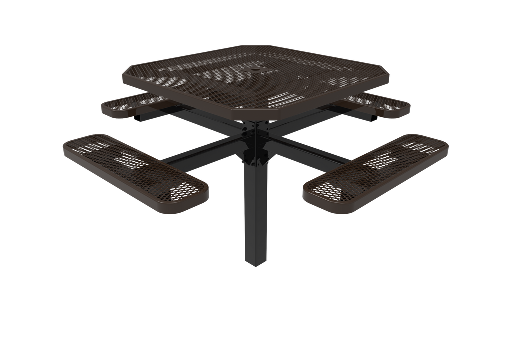 Elevate your outdoor dining spaces and foster vibrant community connections with the MyTCoat 46" Octagon Pedestal Table - Expanded Metal - Inground Mount (SKU TOT46)!
