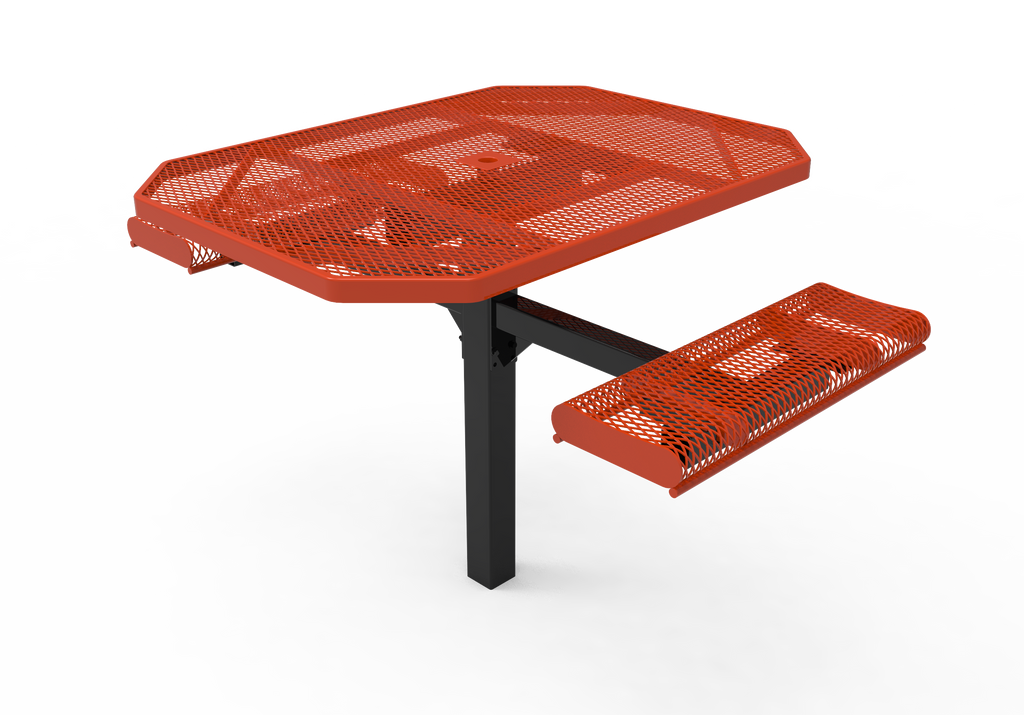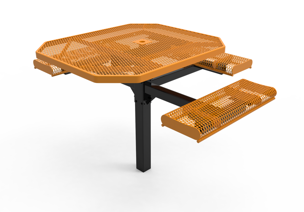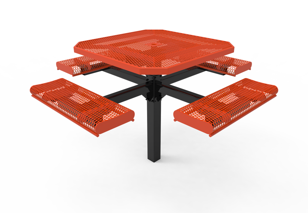 Elevate your outdoor spaces and foster vibrant community connections with the MyTCoat 46” Octagon Pedestal Table with Rolled Seats - Expanded Metal - Inground Mount (SKU TOR46)!