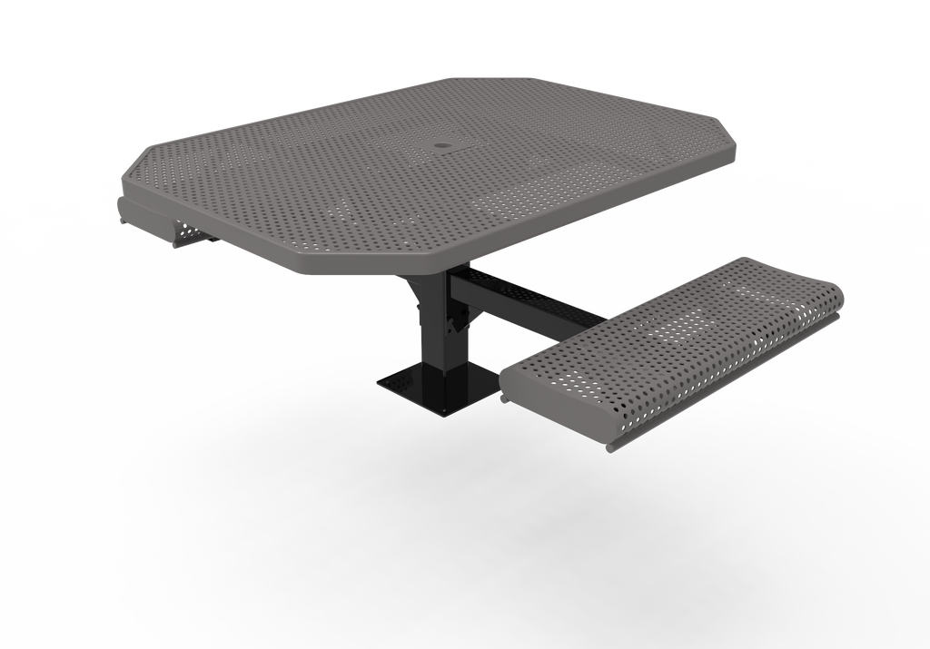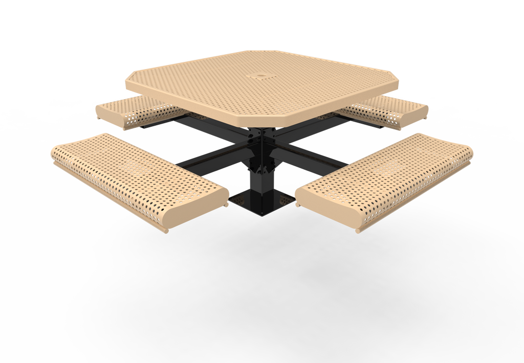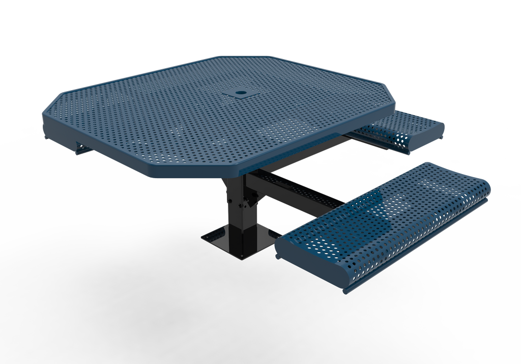 Elevate your outdoor dining spaces and foster vibrant community connections with the MyTCoat 46" Octagon Pedestal Table With Rolled Seats - Punched Steel - Surface Mount (SKU TOR46)!