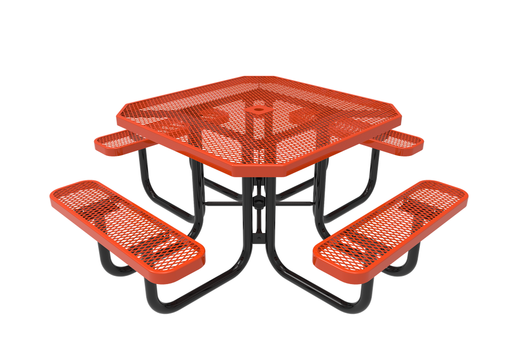 Are you a non-profit organisation, nursery, preschool, school, religious establishment, community centre, daycare, park, apartment complex, or Homeowners association seeking a versatile, durable, and effortlessly portable dining solution for your outdoor needs? Imagine effortlessly setting up a charming gathering spot for picnics, camping trips, or backyard barbecues, a complete seating ensemble that perfectly blends enduring strength with convenient portability. This 46-inch octagon table, crafted from resilient expanded metal, is meticulously designed to enhance every outdoor setting, providing a stylish and reliable surface for lively gatherings and quiet moments alike.