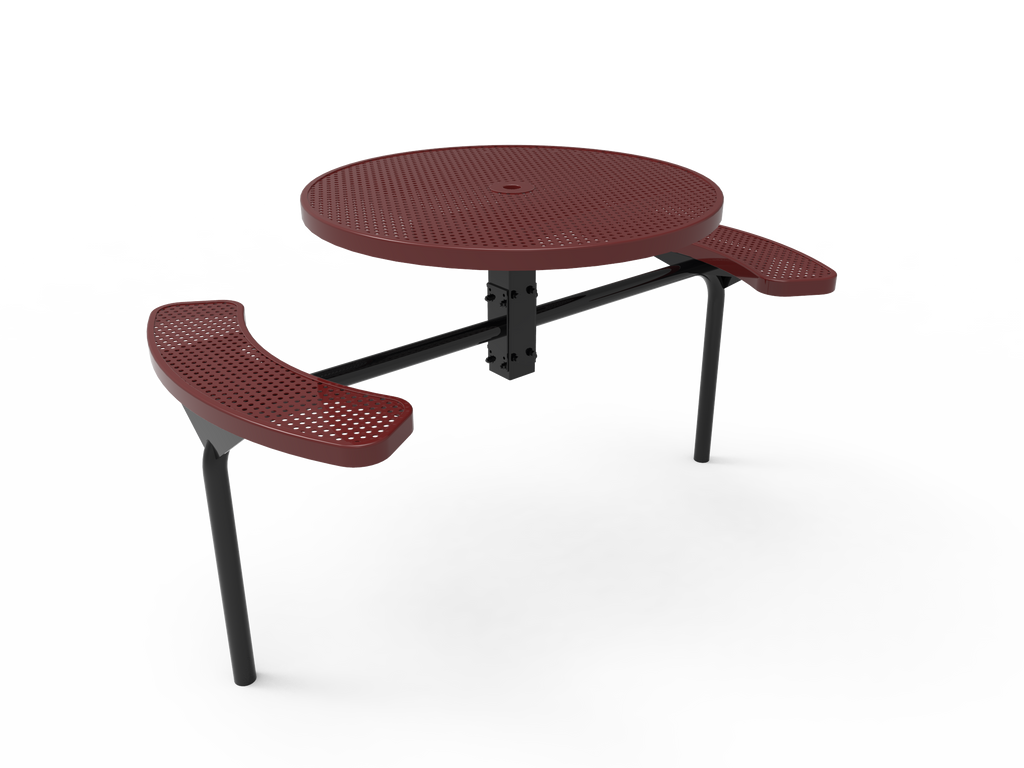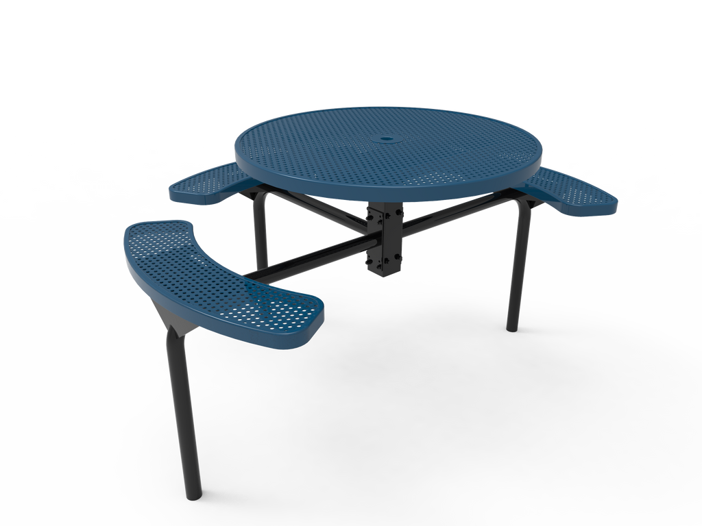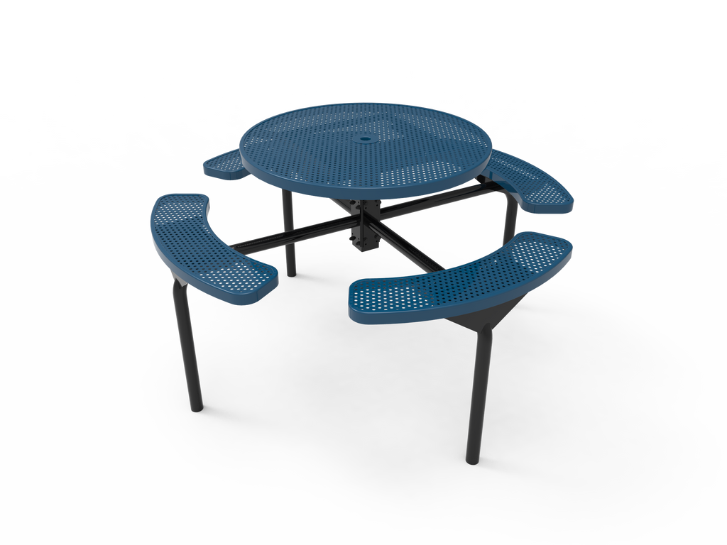 Elevate your outdoor spaces and foster vibrant community connections with the MyTCoat 46” Round Nexus Pedestal Table - Punched Steel - Inground Mount (SKU TRD46)!