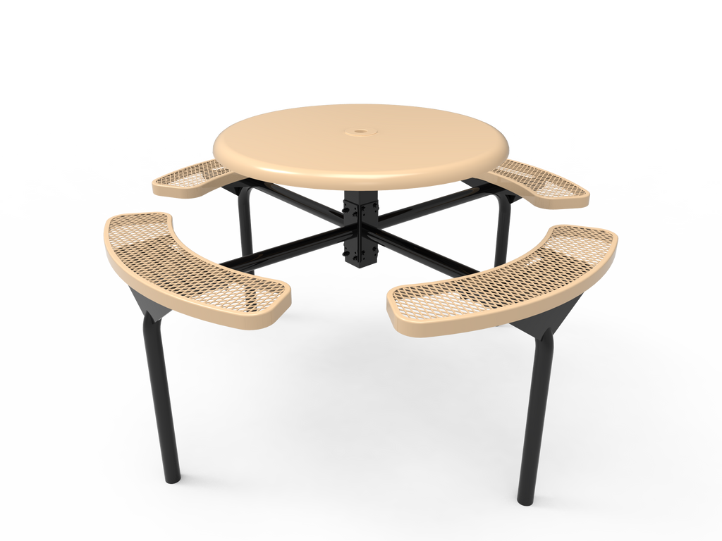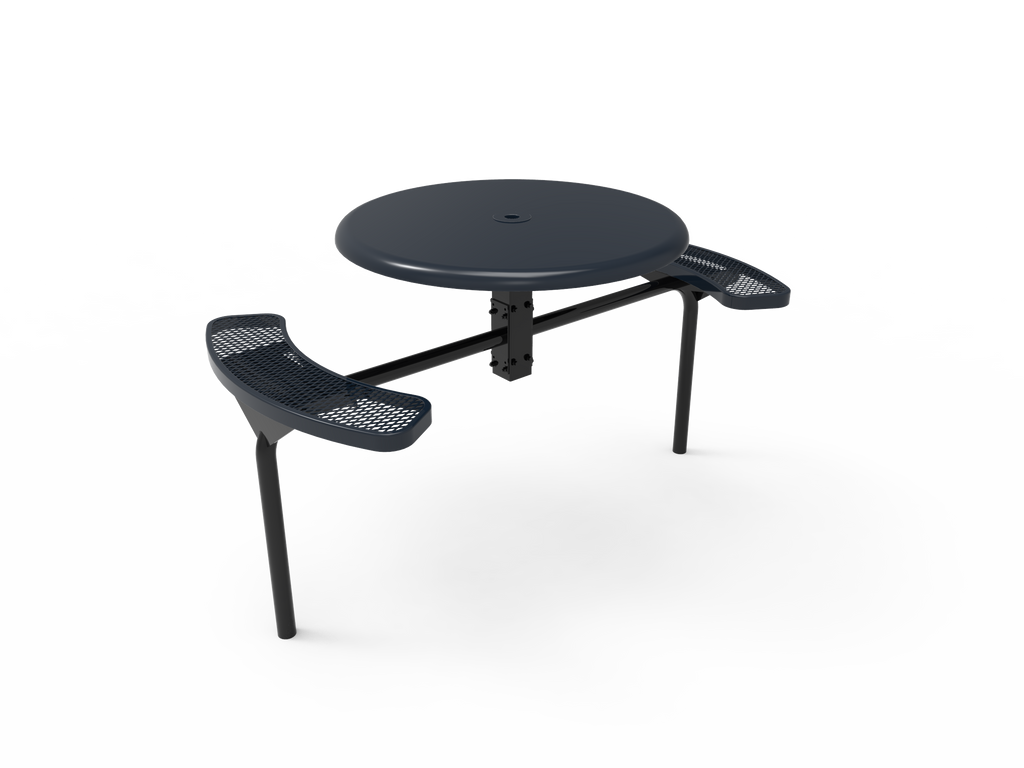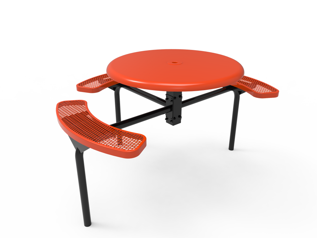 Elevate your outdoor spaces and foster vibrant community connections with the MyTCoat 46” Round Nexus Pedestal Table - Solid Top - Expanded Metal - Inground Mount (SKU TRS46)!