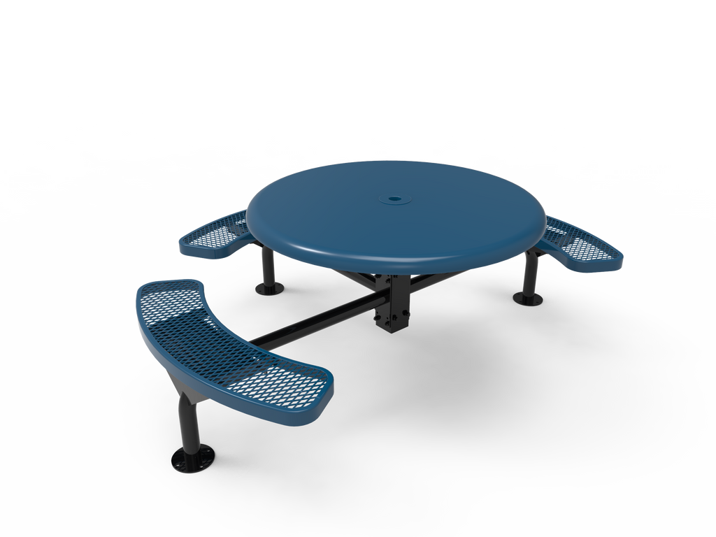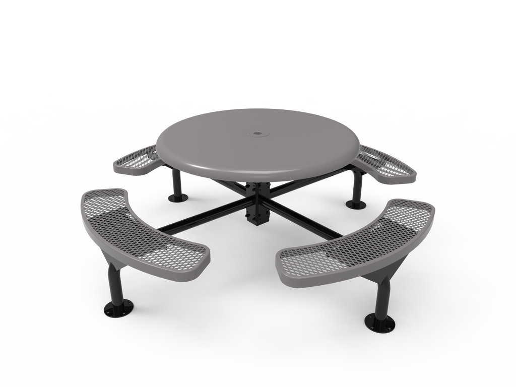 Elevate your outdoor spaces and foster vibrant community connections with the MyTCoat 46” Round Nexus Pedestal Table - Solid Top - Expanded Metal - Surface Mount (SKU TRS46)!