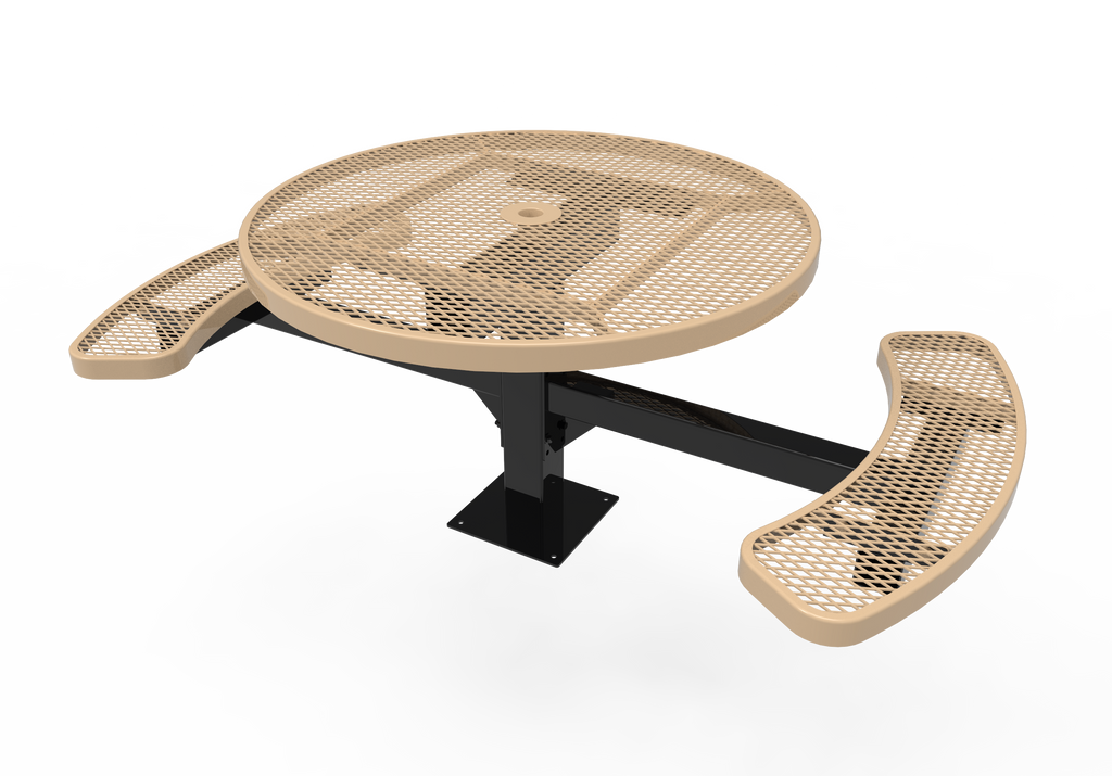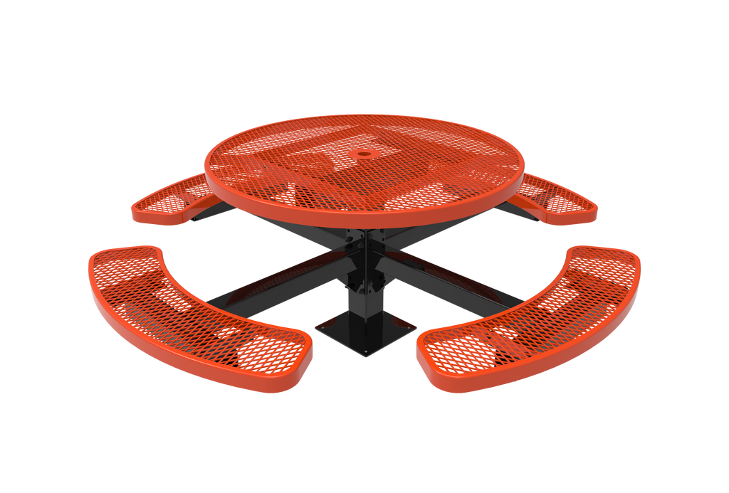 Elevate your outdoor dining spaces and foster vibrant community connections with the MyTCoat 46" Round Pedestal Table - Expanded Metal - Surface Mount (SKU TRD46)!