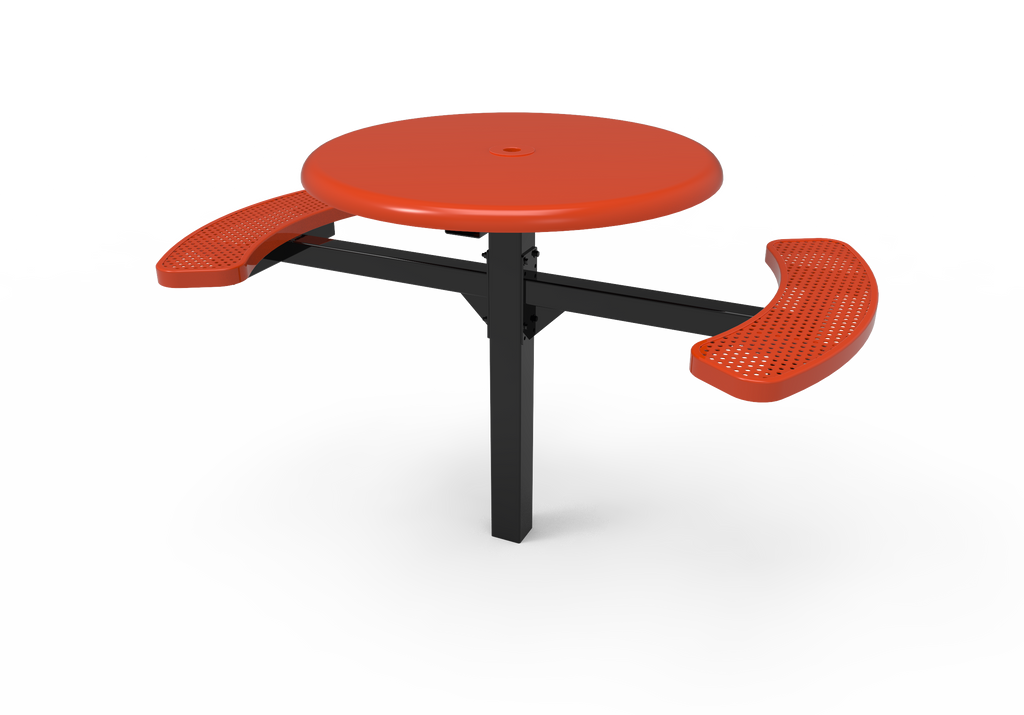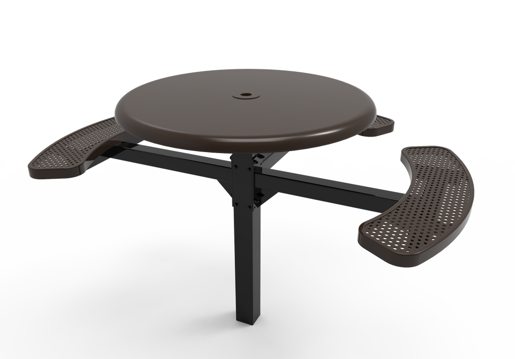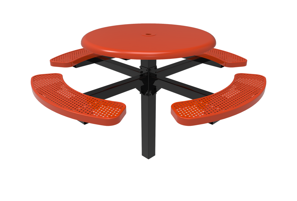 Elevate your outdoor spaces and foster vibrant community connections with the MyTCoat 46” Round Pedestal Table - Solid Top - Punched Steel - Inground Mount (SKU TRS46)!