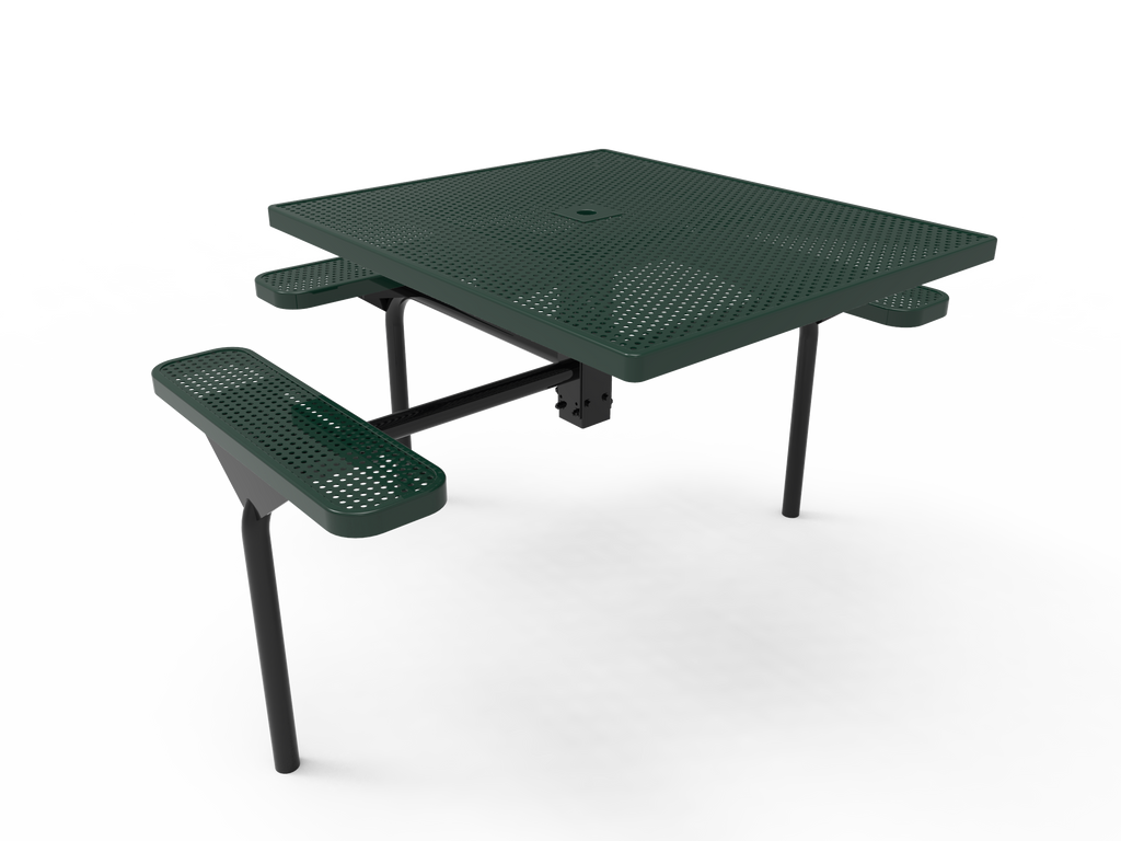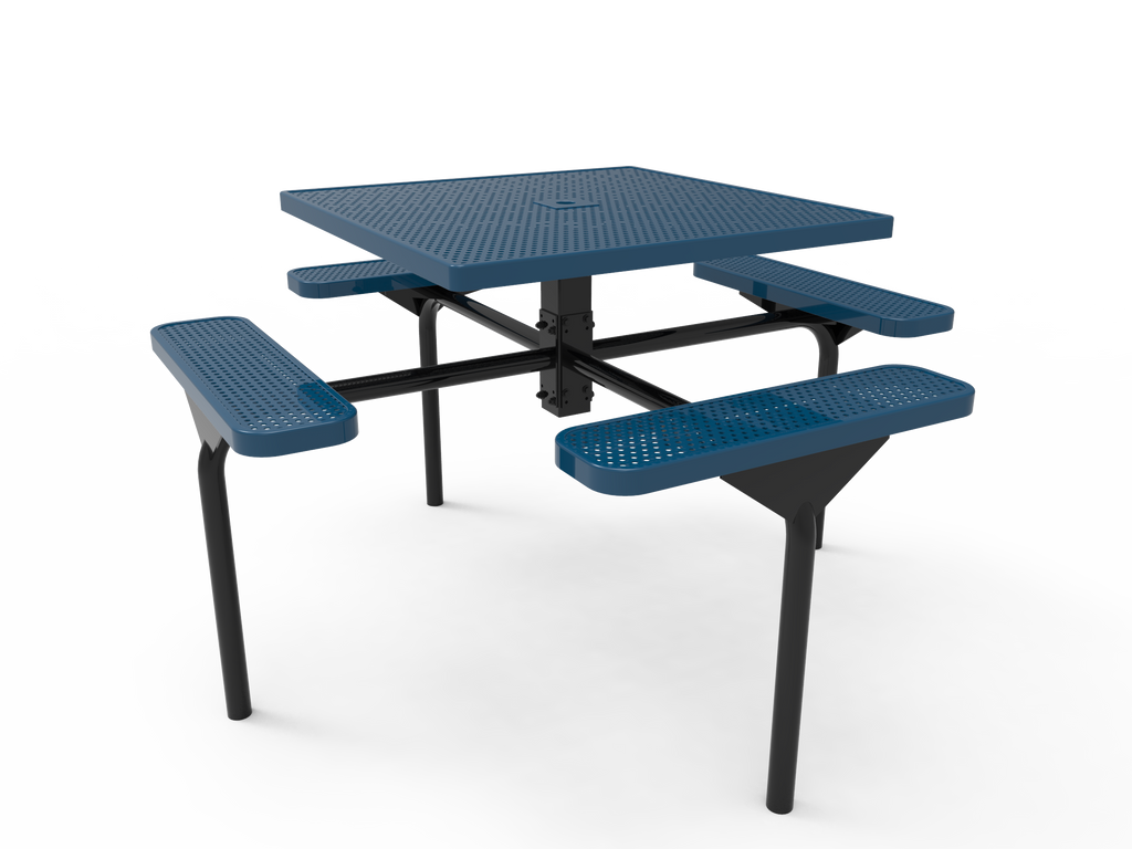 Elevate your outdoor spaces and foster vibrant community connections with the MyTCoat 46” Square Nexus Pedestal Table - Punched Steel - Inground Mount (SKU TSQ46)!