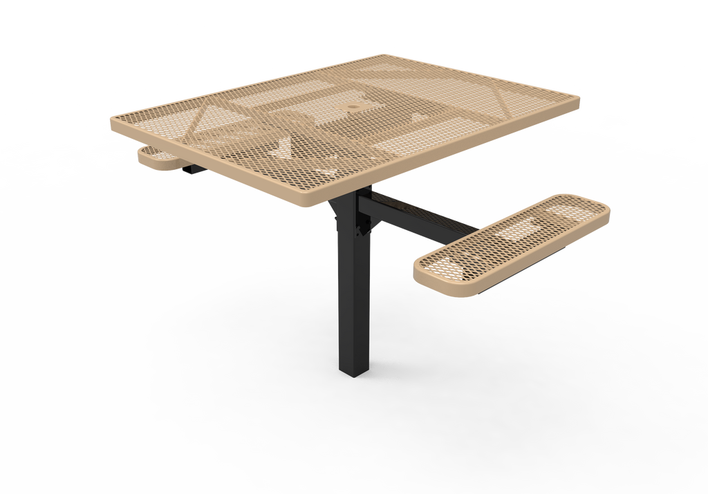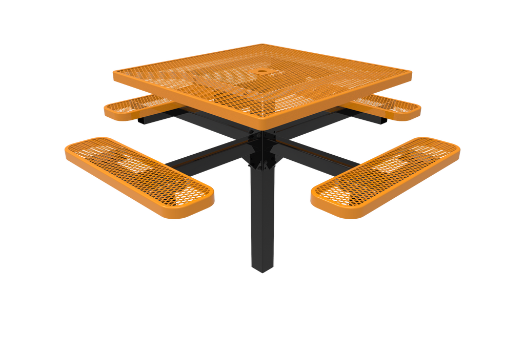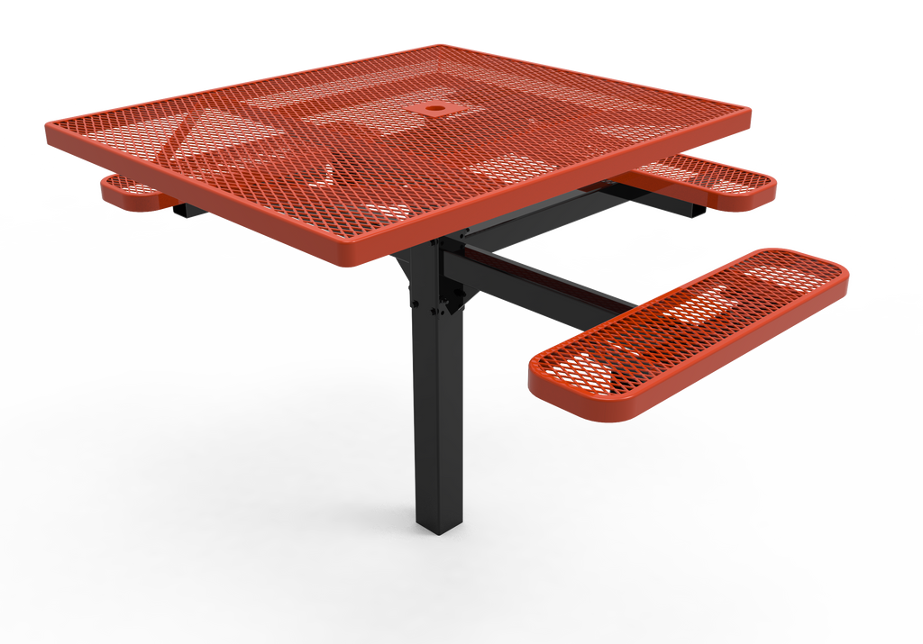 Elevate your outdoor dining spaces and foster vibrant community connections with the MyTCoat 46" Square Pedestal Table - Expanded Metal - Inground Mount (SKU TSQ46)!