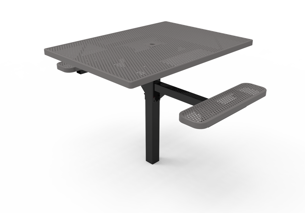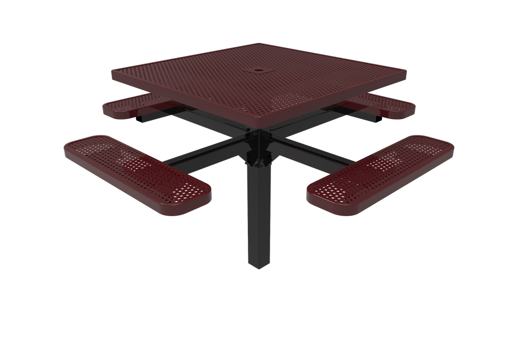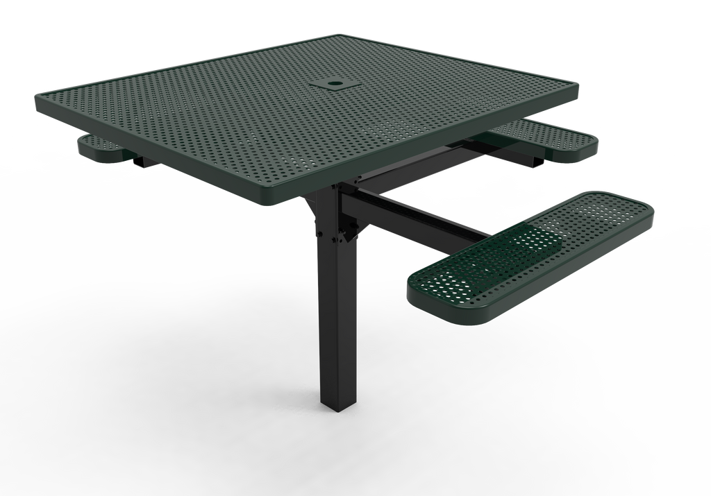 Improve your outdoor dining spaces and foster vibrant community connections with the MyTCoat 46" Square Pedestal Table - Punched Steel - Inground Mount (SKU TSQ46)!