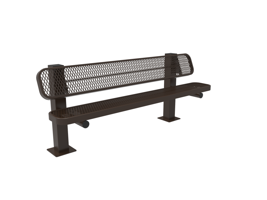 Elevate comfort, stability, and community spirit with the MyTCoat 6’ - 8' Pedestal Bench with Back - Expanded Metal - Surface Mount (SKU BRT06)!