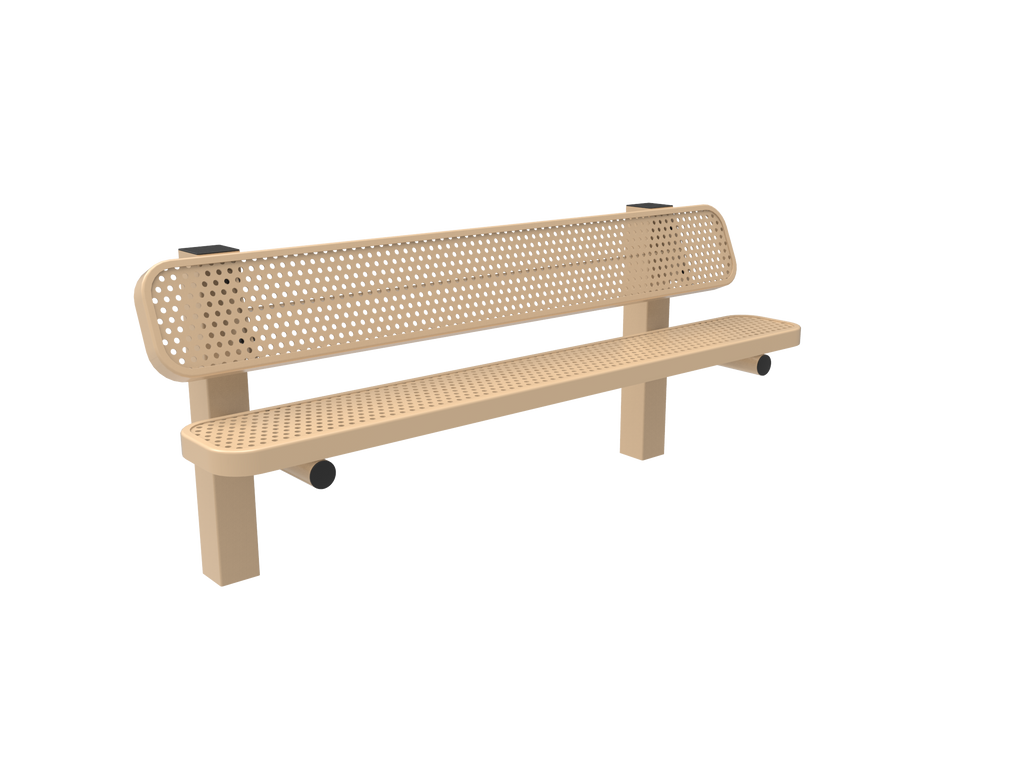 Elevate comfort, style, and community spirit with the MyTCoat 6’ - 8' Pedestal Bench with Back - Punched Steel - Inground Mount (SKU BRT06)!