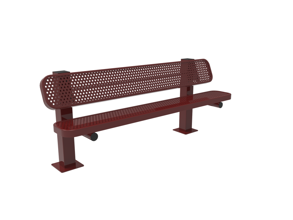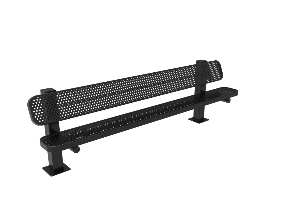 Elevate comfort, style, and community spirit with the MyTCoat 6’ - 8' Pedestal Bench with Back - Punched Steel - Surface Mount (SKU BRT06)!