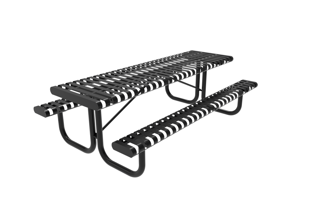 Elevate your outdoor spaces with the MyTCoat 6 Foot Rectangular Portable Table, Slatted Steel, Rolled Edges (SKU TLX06)!