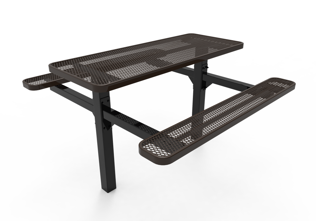 Elevate your outdoor dining spaces and foster vibrant community connections with the MyTCoat 6’ Rectangular Double Pedestal Table - Expanded Metal - Inground Mount (SKU TRT06)!