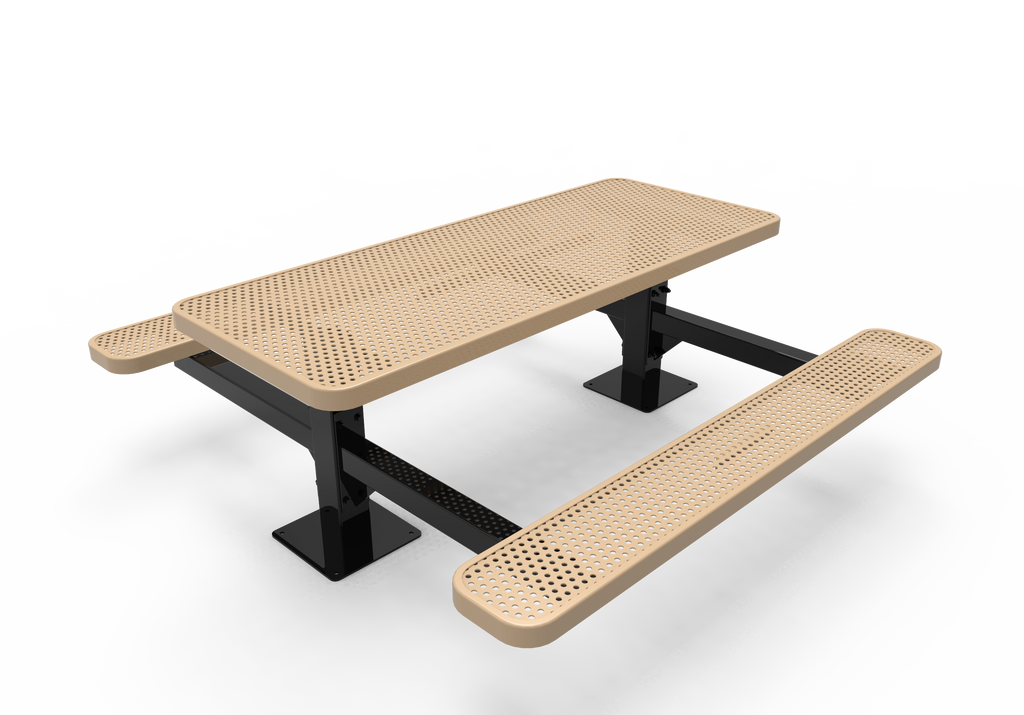 Elevate your outdoor dining spaces and foster vibrant community connections with the MyTCoat 6’ Rectangular Double Pedestal Table, Punched Steel - Surface Mount (SKU TRT06)!