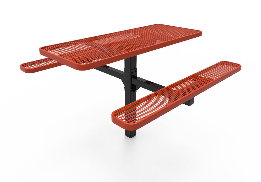 Elevate your outdoor dining areas and foster vibrant community connections with the MyTCoat 6’ Rectangular Pedestal Table - Expanded Metal - Inground Mount (SKU TRT06)!