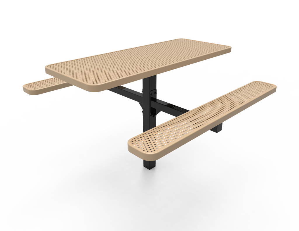 Elevate your outdoor dining spaces and foster vibrant community connections with the MyTCoat 6’ Rectangular Pedestal Table - Punched Steel - Inground Mount (SKU TRT06)!